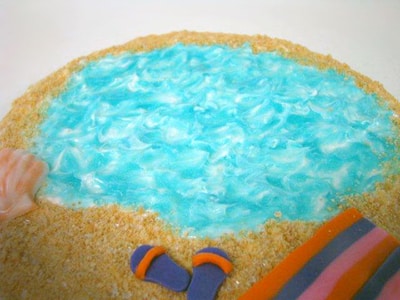 Summer is here – it’s time to hit the beach or have a beach party! What’s a beach party without a beach cake? Here are a few ways to make key features for your themed cake. First and most important are sand and water.